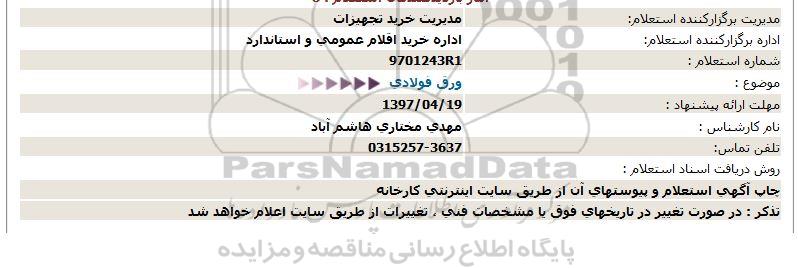 اداره برگزارکننده استعلام: اداره خرید اقلام عمومی و استاندارد