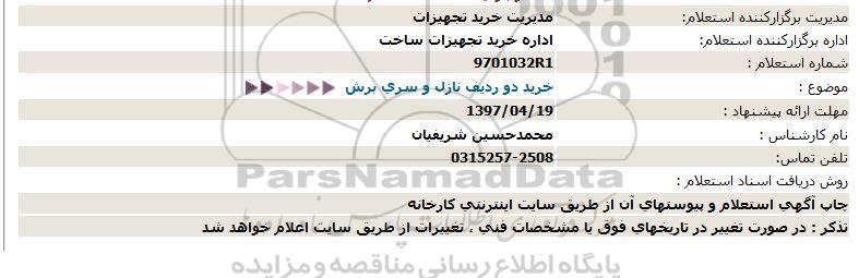 شماره استعلام :     9701032R1