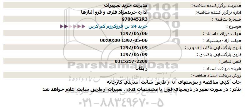مناقصه خرید 24 تن فروکروم کم کربن , مناقصه ، مناقصه خرید 24 تن فروکروم کم کربن