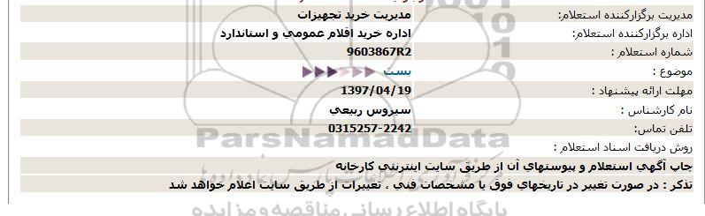 اداره برگزارکننده استعلام: اداره خرید اقلام عمومی و استاندارد