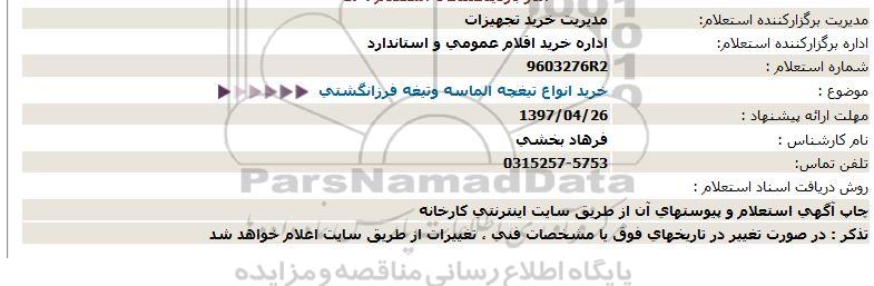 اداره برگزارکننده استعلام : اداره خرید اقلام عمومی و استاندارد