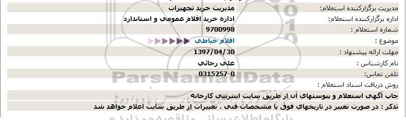 استعلام اقلام خیاطی , استعلام, استعلام اقلام خیاطی