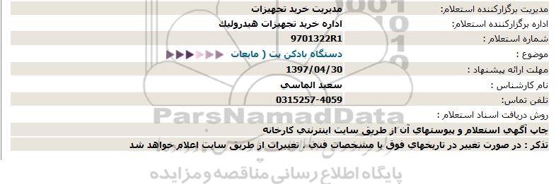اداره برگزارکننده استعلام: اداره خريد تجهيزات هيدروليك