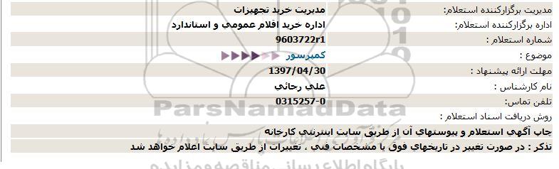 اداره برگزارکننده استعلام: اداره خرید اقلام عمومی و استاندارد