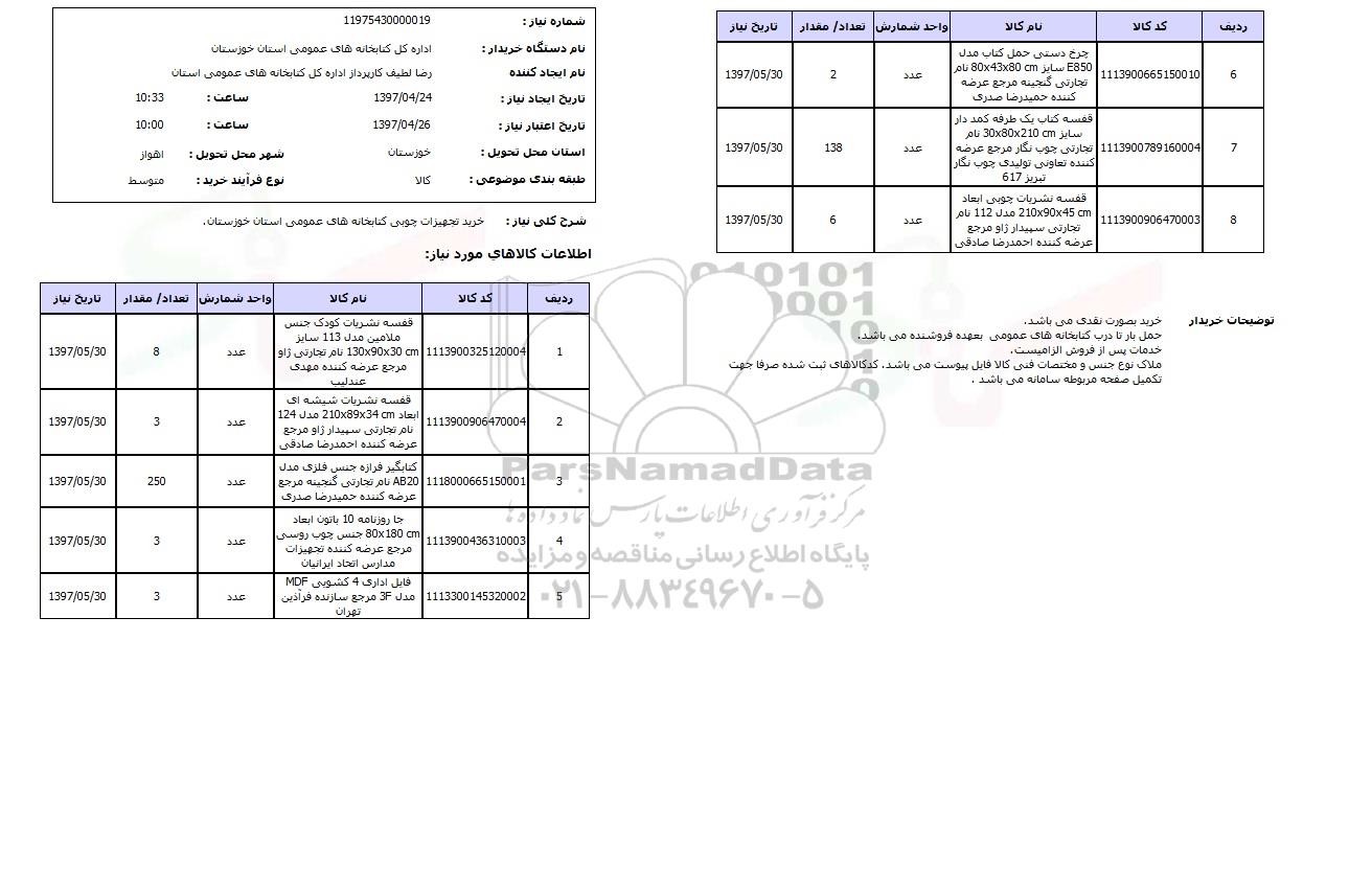 نام دستگاه خریدار: اداره کل کتابخانه های عمومی استان خوزستان