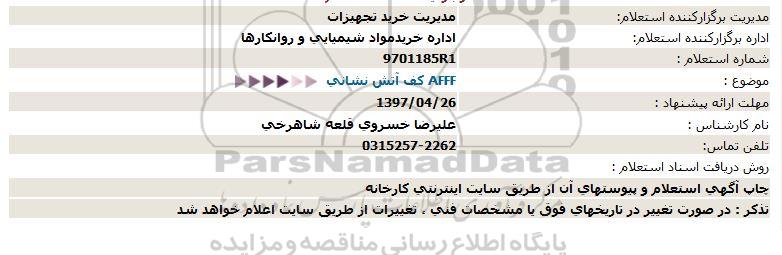 اداره برگزارکننده استعلام: اداره خریدمواد شیمیایی و روانكارها