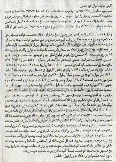 مزایده ششدانگ یکباب انباری بخش سه اردبیل کلاسه 950370