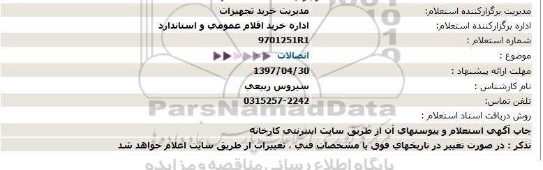 اداره برگزارکننده استعلام: اداره خرید اقلام عمومی استاندارد