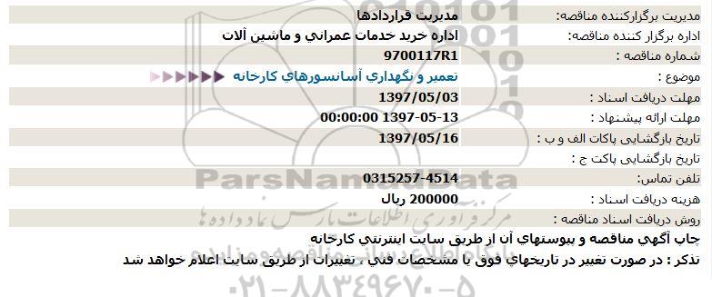 مناقصه تعمیر و نگهداری آسانسورهای کارخانه, مناقصه , مناقصه تعمیر و نگهداری آسانسورهای کارخانه