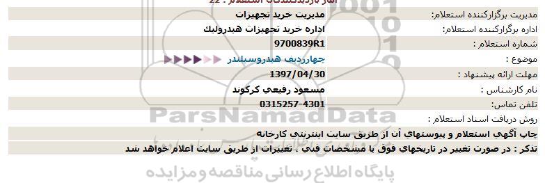 موضوع :استعلام چهار ردیف هیدروسیلندر
