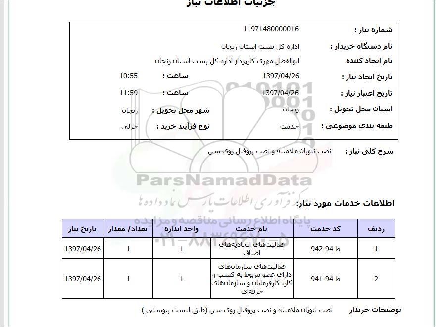 نام دستگاه خریدار: اداره کل پست استان زنجان