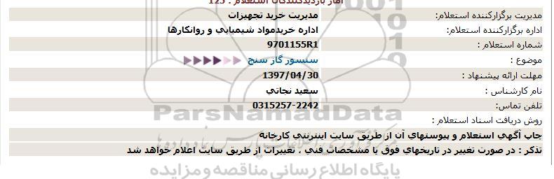 اداره برگزارکننده استعلام: اداره خرید مواد شیمیایی و روانکارها