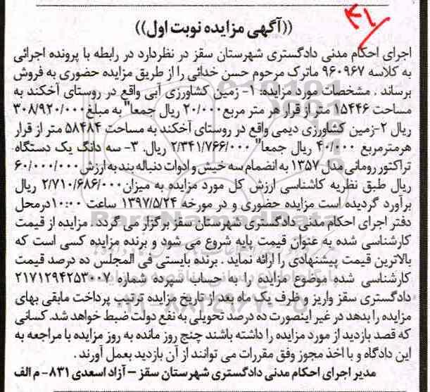 مزایده: سه دانگ یک دستگاه تراکتور رومانی مدل 1357 به ارزش 60.000.000 ریال