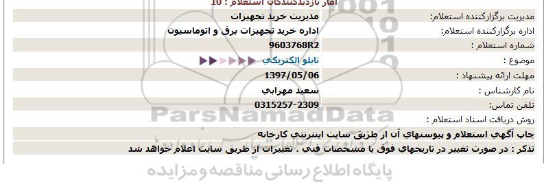 اداره برگزارکننده استعلام: اداره خرید تجهیزات برق و اتوماسیون