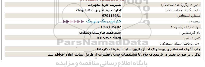 اداره برگزارکننده استعلام: اداره خرید تجهیزات هیدرولیک