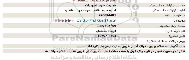 موضوع : خرید 37 ردیف انواع ابزارآلات