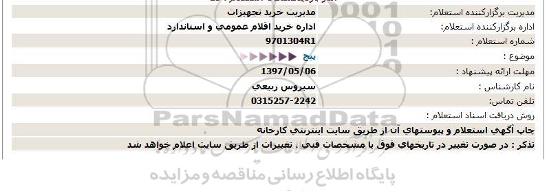 اداره برگزارکننده استعلام: اداره خرید اقلام عمومی و استاندارد