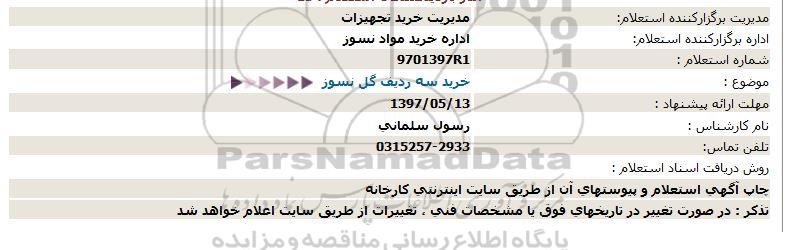 اداره برگزارکننده استعلام: اداره خرید مواد نسوز