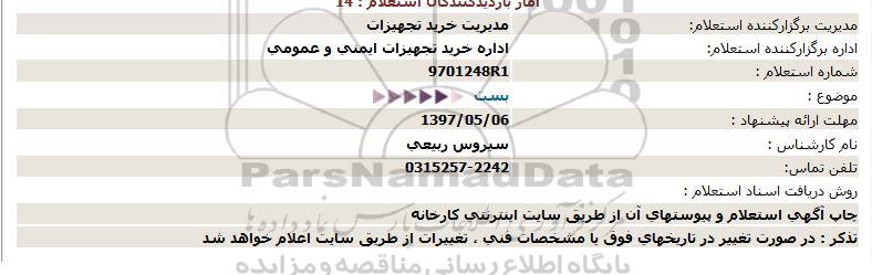 اداره برگزارکننده استعلام: اداره خرید اقلام عمومی و استاندارد