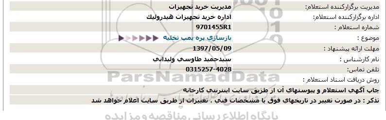 اداره برگزار کننده استعلام : اداره خرید تجهیزات هیدورلیک