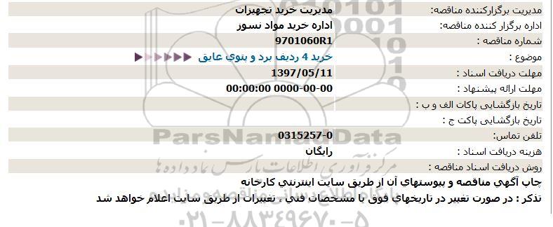 اداره برگزارکننده استعلام: اداره خرید مواد نسوز