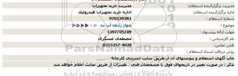 اداره برگزارکننده استعلام: اداره خرید تجهیزات هیدرولیک
