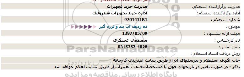 اداره برگزارکننده استعلام: اداره خرید تجهیزات هیدرولیک