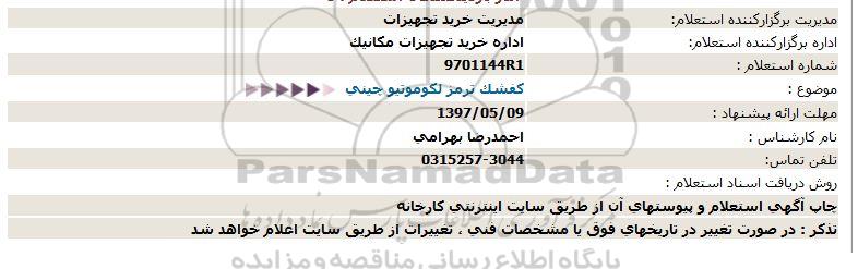 اداره برگزارکننده استعلام: اداره خرید تجهیزات مکانیک