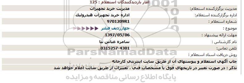 اداره برگزارکننده استعلام: اداره خرید تجهیزات هیدرولیک