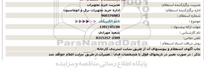 اداره برگزارکننده استعلام: اداره خرید تجهیزات برق و اتوماسیون