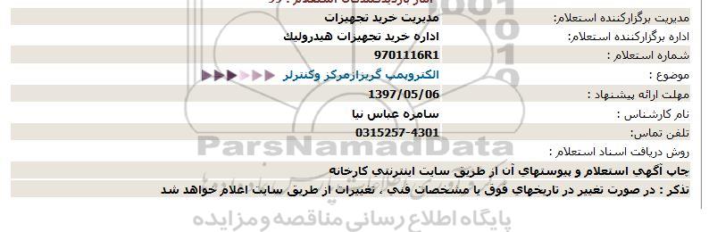 اداره برگزارکننده استعلام: اداره خرید تجهیزات هیدرولیک