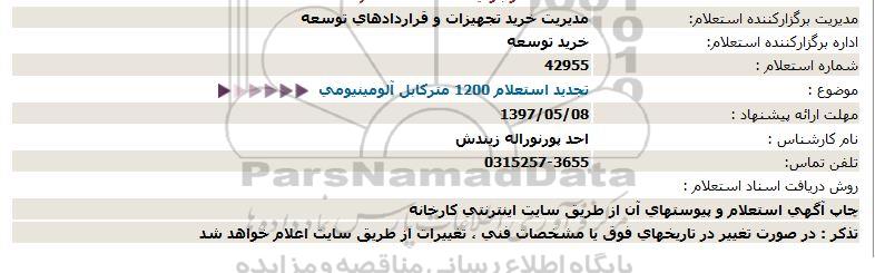 استعلام 1200 متر کابل آلومینیومی تجدید, استعلام , استعلام 1200 متر کابل آلومینیومی تجدید