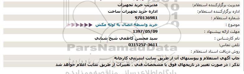 اداره برگزارکننده استعلام: اداره خرید تجهیزات ساخت