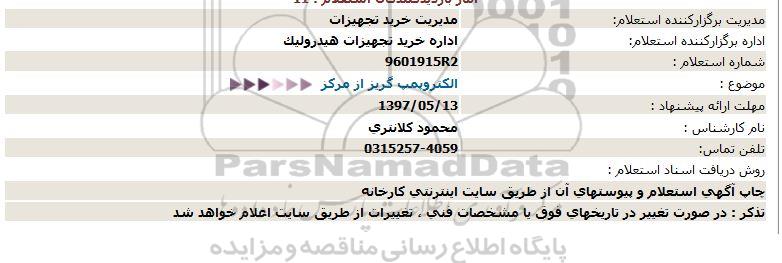 اداره برگزارکننده استعلام: اداره خرید تجهیزات هیدرولیک