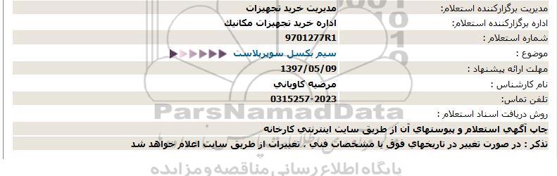 شماره استعلام : 9701277R1