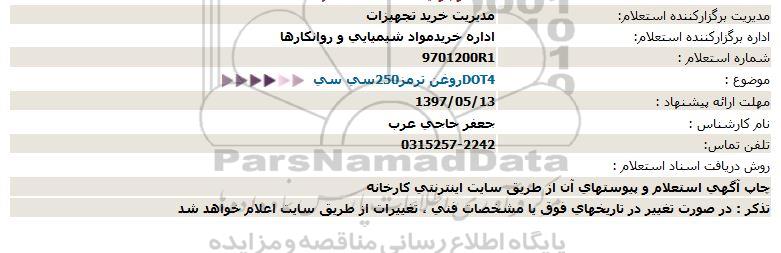 اداره برگزارکننده استعلام: اداره خرید مواد شیمیایی و روانکارها