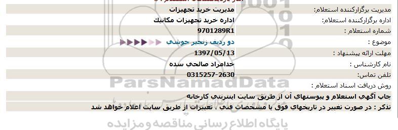 اداره برگزارکننده استعلام: اداره خرید تجهیزات هیدرولیک