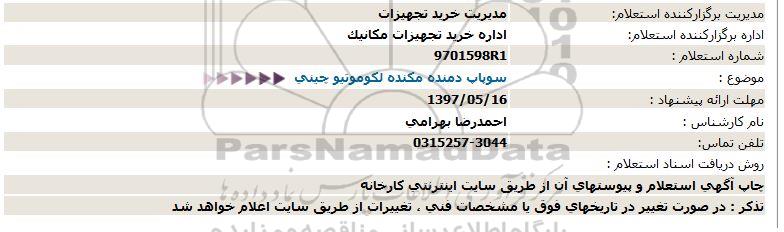 اداره برگزارکننده استعلام: اداره خرید تجهیزات مکانیک