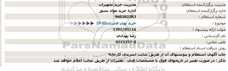 اداره برگزارکننده استعلام: اداره خرید مواد نسوز