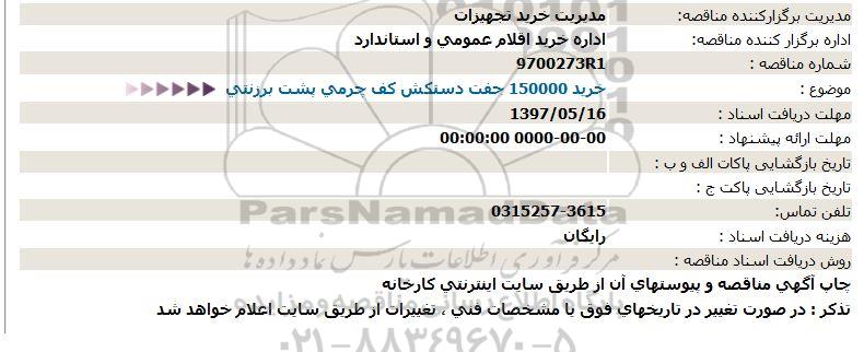موضوع : خرید 150000 جفت دستكش كف چرمی پشت برزنتی