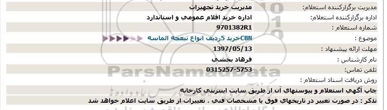 اداره برگزارکننده استعلام: اداره خريد اقلام عمومی استاندارد