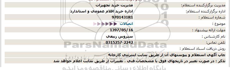 اداره برگزارکننده استعلام: اداره خرید اقلام عمومی و استاندارد