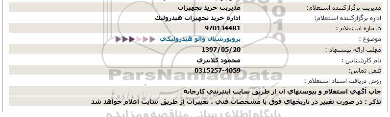 استعلام پروپورشنال والو هیدرولیکی , استعلام,استعلام پروپورشنال والو هیدرولیکی