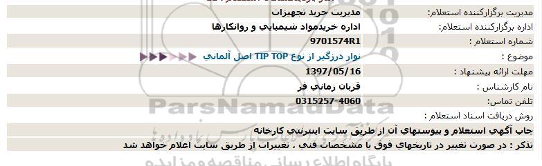 استعلام نوار درزگیر از نوع TIP TOP اصل آلمانی , استعلام, استعلام نوار درزگیر از نوع TIP TOP اصل آلمانی