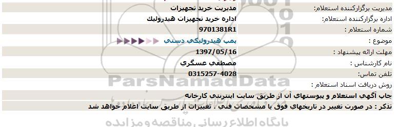 اداره برگزارکننده استعلام: اداره خرید تجهیزات هیدرولیک