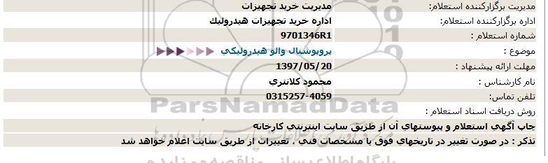 استعلام پروپوشنال والو هیدرولیكی , استعلام, استعلام پروپوشنال والو هیدرولیكی