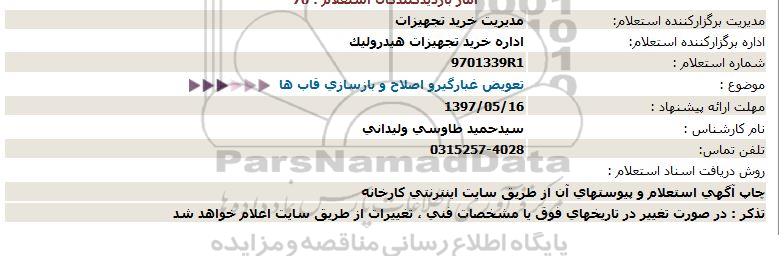 اداره برگزارکننده استعلام: اداره خرید تجهیزات هیدرولیک