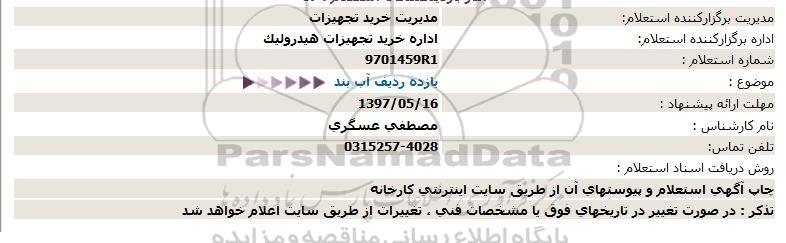 اداره برگزارکننده استعلام: اداره خرید تجهیزات هیدرولیک