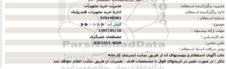 اداره برگزارکننده استعلام: اداره خرید تجهیزات هیدرولیک