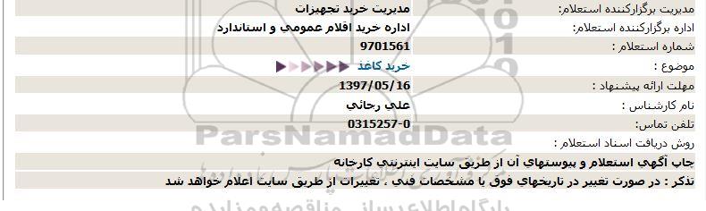 استعلام خرید کاغذ, استعلام, استعلام خرید کاغذ
